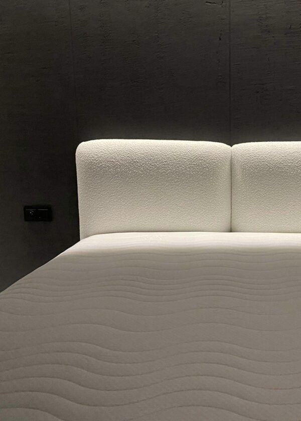 Łóżko z zagłowiem w formie dwóch puchatych poduszek. Wysoko elastyczna pianka. Barankowa tkanina to absolutny hit tego sezonu. Łóżko dopasowane pod materac 160x200cm.