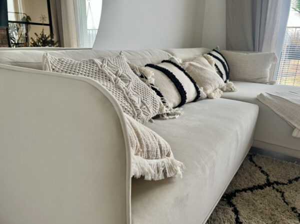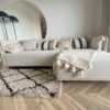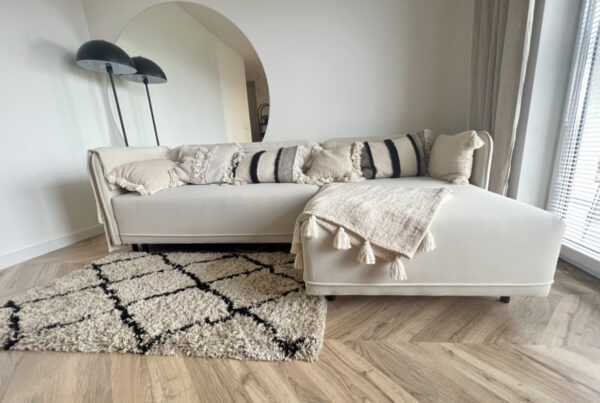 Pinterestowy narożnik z funkcją spania. Doda charakteru każdemu wnętrzu. Hydrofobowa tkanina, miękka wysoko-elastyczna pianka nieodkształcająca się. Elegancki szew oraz czarne ponadczasowe nóżki. Poduszki boho dokupowane oddzielnie.