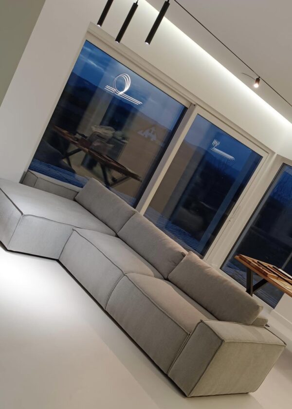Puchata sofa narożna. Silikonowy puch, wysoko-elastyczne pianki HR oraz sprężyny kieszeniowe składają się na wygodę sofy. Tkanina hydrofobowa, łatwa w czyszczeniu odpowiednia do domów z dziećmi i zwierzętami. Funkcja spania, oraz pojemniki na pościel.